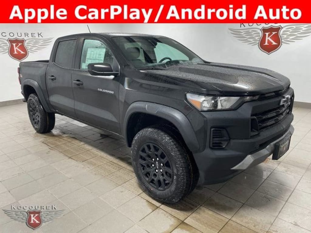 Included is a 7 year unlimited mileage limited powertrain warranty*: a Kocourek Chevrolet exclusive, Bluetooth, 4WD, 3.42 Rear Axle Ratio, 4-Way Manual Passenger Seat Adjuster, 6-Speaker Audio System Feature, 6-Way Manual Driver Seat Adjuster, Apple CarPlay/Android Auto, Auto High-beam Headlights, Automatic Emergency Braking, Automatic temperature control, Brake assist, Chevy Safety Assist, Cloth Seat Trim, Compass, Delay-off headlights, Driver door bin, Driver vanity mirror, Dual front impact airbags, Dual front side impact airbags, Electronic Stability Control, Emergency communication system: OnStar, Following Distance Indicator, Forward Collision Alert, Front anti-roll bar, Front dual zone A/C, Heated door mirrors, Navigation System, Occupant sensing airbag, Outside temperature display, Overhead airbag, Overhead console, Panic alarm, Power windows, Radio data system, Radio: 11.3 Diagonal Advanced Color LCD Display, Rear step bumper, Rear window defroster, Remote keyless entry, Security system, Speed-sensing steering, Steering Wheel Mounted Audio Controls, Steering wheel mounted audio controls, Tachometer, Variably intermittent wipers, Wheels: 18 x 8.5 Black High Gloss Aluminum, Wireless Phone Projection.