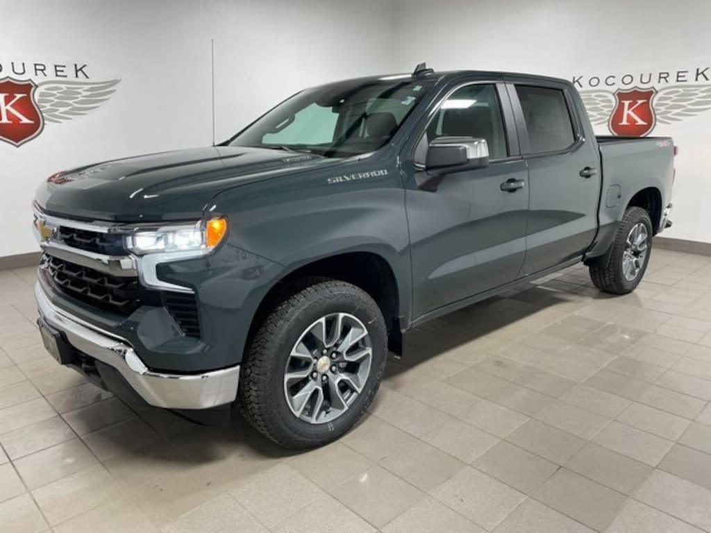 Included is a 7 year unlimited mileage limited powertrain warranty*: a Kocourek Chevrolet exclusive, Bluetooth, 8-Speed Automatic, 4WD, Jet Black Cloth, 10-Way Power Driver Seat w/Lumbar, 12.3 Multicolor Reconfigurable Digital Display, 120-Volt Bed Mounted Power Outlet, 120-Volt Interior Power Outlet, 6-Speaker Audio System, All-Star Edition, Apple CarPlay/Android Auto, Auto High-beam Headlights, Auto-Locking Rear Differential, Automatic Emergency Braking, Automatic temperature control, Bluetooth® For Phone, Brake assist, Bumpers: chrome, Chrome Mirror Caps, Compass, Convenience Package, Deep-Tinted Glass, Delay-off headlights, Dual front impact airbags, Dual front side impact airbags, Dual-Zone Automatic Climate Control, Electric Rear-Window Defogger, Electronic Cruise Control, Electronic Stability Control, Emergency communication system: OnStar, Following Distance Indicator, Forward Collision Alert, Front anti-roll bar, Front dual zone A/C, Front Frame-Mounted Black Recovery Hooks, Front Pedestrian Braking, Fully automatic headlights, HD Rear Vision Camera, Heated Steering Wheel, Hitch Guidance, Integrated Trailer Brake Controller, IntelliBeam Automatic High Beam On/Off, Lane Keep Assist w/Lane Departure Warning, LED Cargo Area Lighting, Manual Tilt/Telescoping Steering Column, Occupant sensing airbag, OnStar Services Capable, Outside temperature display, Overhead airbag, Panic alarm, Passenger vanity mirror, Power door mirrors, Premium audio system: Chevrolet Infotainment 3 Premium, Radio: Chevrolet Infotainment 3 Premium System, Rear step bumper, Remote keyless entry, Remote Vehicle Starter System, Security system, Speed control, Speed-sensing steering, Steering Wheel Audio Controls, Steering wheel mounted audio controls, Tachometer, Telescoping steering wheel, Theft Deterrent System (Unauthorized Entry), Tilt steering wheel, Tire Pressure Monitoring System, Trailering Package, Trip computer, Variably intermittent wipers, Voltmeter, Wheels: 18 x 8.5 Bright Silver Painted Aluminum, Wheels: 20 x 9 Painted Aluminum, Wi-Fi Hot Spot Capable, Wrapped Steering Wheel.