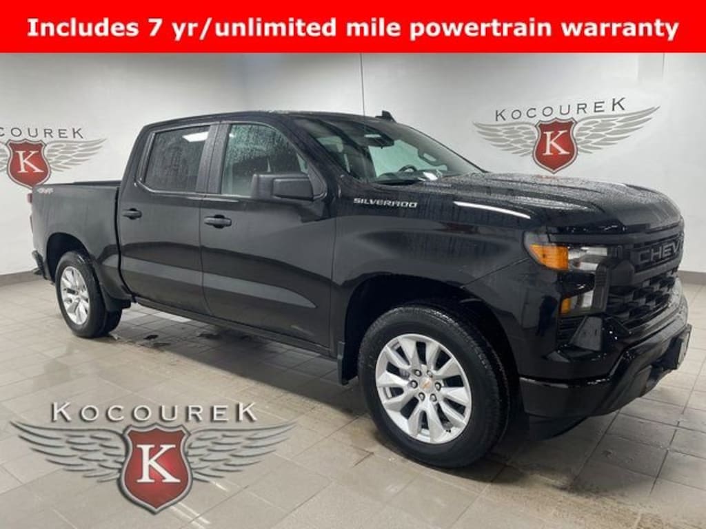 Included is a 7 year unlimited mileage limited powertrain warranty*: a Kocourek Chevrolet exclusive, Bluetooth, 8-Speed Automatic, 4WD, Black Cloth, 120-Volt Bed Mounted Power Outlet, 120-Volt Interior Power Outlet, 3.42 Rear Axle Ratio, 3.5 Monochromatic Display Driver Info Center, 40/20/40 Front Split-Bench Seat, 6-Speaker Audio System, Apple CarPlay/Android Auto, Auto High-beam Headlights, Auto-Locking Rear Differential, Automatic Emergency Braking, Bluetooth® For Phone, Brake assist, Bumpers: body-color, Color-Keyed Carpeting Floor Covering, Compass, Custom Convenience Package, Custom Value Package, Deep-Tinted Glass, Delay-off headlights, Driver door bin, Driver vanity mirror, Dual front impact airbags, Dual front side impact airbags, Electric Rear-Window Defogger, Electronic Cruise Control, Electronic Stability Control, Emergency communication system: OnStar, Following Distance Indicator, Forward Collision Alert, Front anti-roll bar, Front Frame-Mounted Black Recovery Hooks, Front Pedestrian Braking, Front Rubberized Vinyl Floor Mats, Front wheel independent suspension, Fully automatic headlights, HD Rear Vision Camera, Heated door mirrors, High Capacity Suspension Package, Hitch Guidance, Integrated Trailer Brake Controller, LED Cargo Area Lighting, Manual Tilt Wheel Steering Column, Occupant sensing airbag, OnStar Services Capable, Outside temperature display, Overhead airbag, Overhead console, Panic alarm, Power door mirrors, Premium audio system: Chevrolet Infotainment 3, Radio data system, Radio: Chevrolet Infotainment 3 System, Rear Rubberized-Vinyl Floor Mats, Rear step bumper, Rear Wheelhouse Liners, Rear window defroster, Remote Keyless Entry, Remote Vehicle Starter System, SiriusXM Trial Subscription, Speed control, Speed-sensing steering, Split folding rear seat, Standard Tailgate, Tachometer, Tilt steering wheel, Tire Pressure Monitoring System, Traction control, Trailering Package, Trip computer, Variably intermittent wipers, Voltmeter, Wheels: 20 x 9 Bright Silver Painted Aluminum, Wi-Fi Hot Spot Capable.