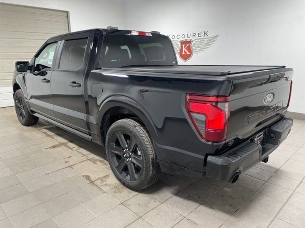2025 Ford F-150 STX Agate Black Metallic 5.0L V8 4WD, 6 Speakers, Air Conditioning, AM/FM radio: SiriusXM with 360L, Auto High-beam Headlights, Brake assist, Bumpers: body-color, Compass, Delay-off headlights, Driver door bin, Dual Exhaust w/Black Tips, Dual front impact airbags, Dual front side impact airbags, Electronic Locking w/3.73 Axle Ratio, Electronic Stability Control, Emergency communication system: SYNC 4 911 Assist, Equipment Group 200A Mid, Front anti-roll bar, Front Bucket Seats, Front License Plate Bracket, Front reading lights, Front wheel independent suspension, Fully automatic headlights, GVWR: 6,650 lbs Payload Package, Internet access capable: FordPass Connect 5G, LED Fog Lamps w/LED Cornering Lamp, Lobo Package, Lower Body Ground Effects, Occupant sensing airbag, Outside temperature display, Overhead airbag, Overhead console, Painted Grille, Panic alarm, Passenger vanity mirror, Power steering, Power windows, Radio data system, Radio: AM/FM Stereo w/SiriusXM 360L, Rear Parking Sensors, Rear step bumper, Rear window defroster, Remote keyless entry, Retractable Tonneau Pickup Box Cover, Security system, Signature Lighting, Speed control, Steering wheel mounted audio controls, SYNC 4 w/Enhanced Voice Recognition, Tachometer, Tilt steering wheel, Two-Speed Auto 4WD w/Neutral Towing Capability, Variably intermittent wipers, Voltmeter, Wheels: 20" Dark Gray w/Machined Aluminum, Wheels: 22" Aluminum.