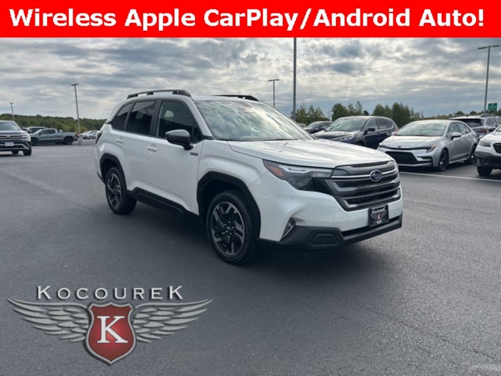 $1,577 off MSRP! Crystal White Pearl 2025 Subaru Forester Hybrid Premium AWD Lineartronic CVT 2.5L 4-Cylinder DOHC 16V 35/34 City/Highway MPG Navigation system: TomTom Navigation w/what3words.
