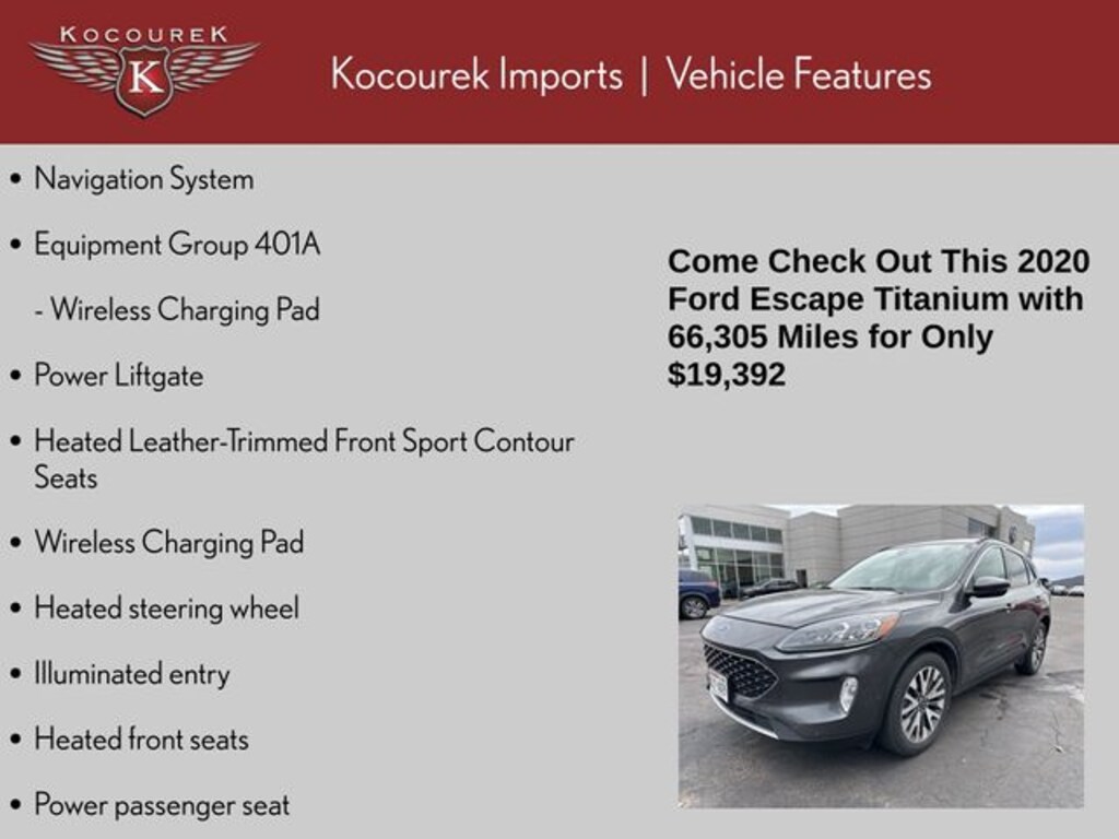 * JD Power Automotive Performance, Execution and Layout (APEAL) Study Please call one of our knowledgeable Sales Consultants with any question you might have. Serving guests in Marathon, Portage, Langlade, Oneida, Taylor, Vilias, Wood, Clark, Lincoln, Waupaca or near me! 2020 Ford Escape Titanium