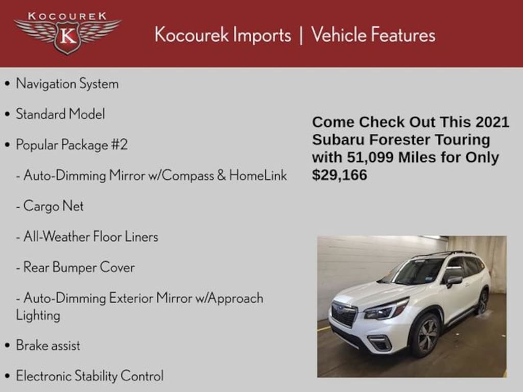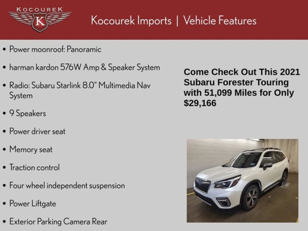 Whether you're seeking a versatile family SUV, a capable adventure companion, or a refined daily driver, the 2021 Subaru Forester Touring is the perfect choice. Discover the perfect blend of style, performance, and technology by scheduling a test drive today.